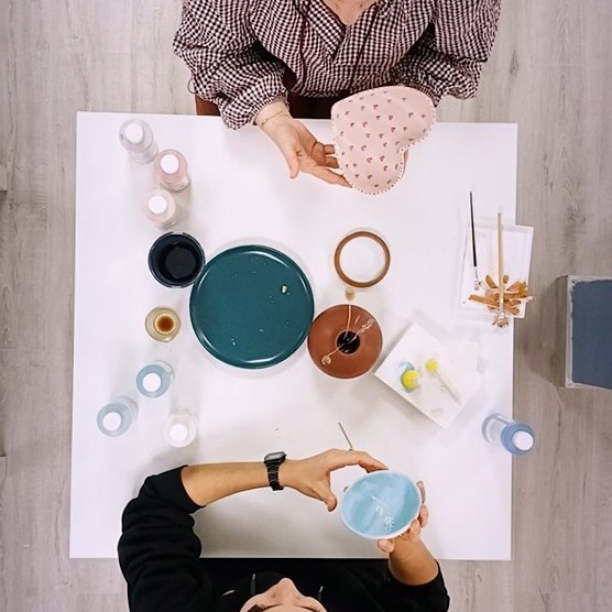 Selon la technique choisie, vous repartez avec votre pièce le jour même ou venez la récupérer après cuisson, notamment pour la peinture sur céramique.